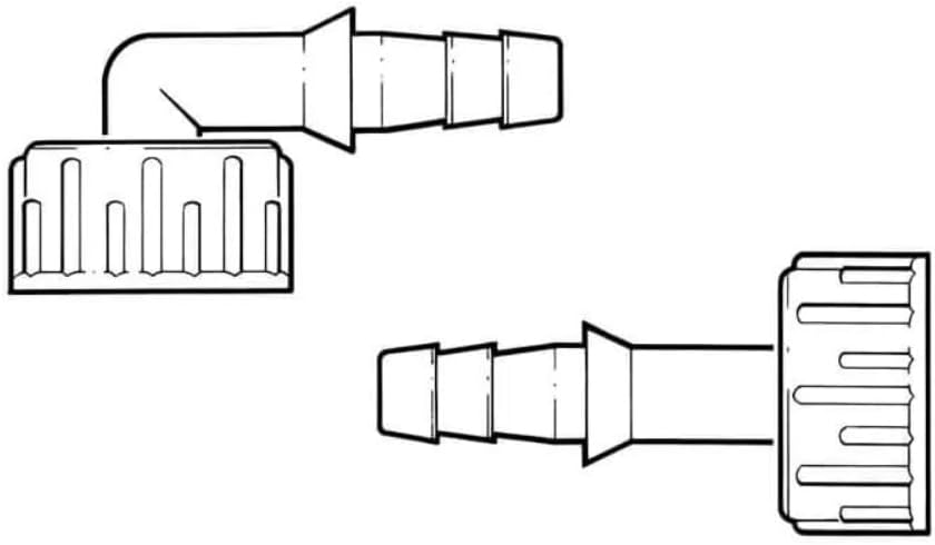Pack of 2 items: 1 x Washing Machine Straight Hose Outlet Adaptor for connecting washing machine & dishwasher hoses. 1 x Washing Machine Angled Hose Outlet Adaptor for connecting washing machine & dishwasher hoses. Both adapters have a 3/4" F Nut that connects to the appliance and a 3/8" Tail that connects tot he outlet hose.